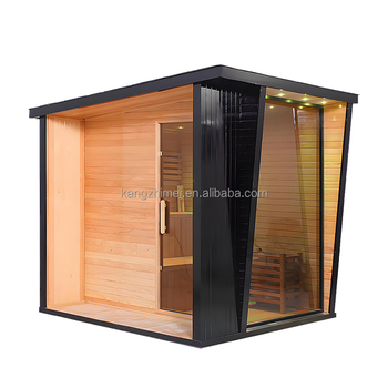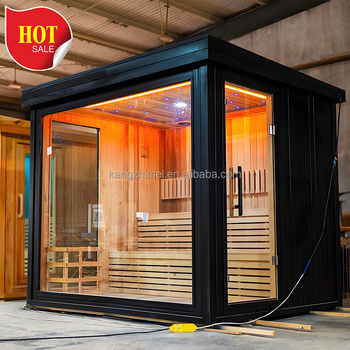 Keya Sauna diseño Popular barato al aire libre sala de vapor Spa Sauna habitación Canadá cedro rojo madera media pared de vidrio barril Sauna